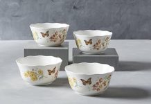 价格太美丽!【折后$9.99 Prime包邮】Lenox Butterfly Meadow 美耐皿碗四件套