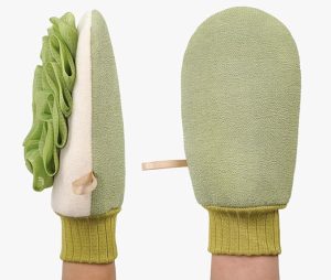 原价$7.99, 去角质手套的一侧由天然丝瓜络海绵制成,可轻轻地去除死皮细胞和杂质。另一面由去角质面料制成,可按摩并刺激血液流动,改善皮肤外观。