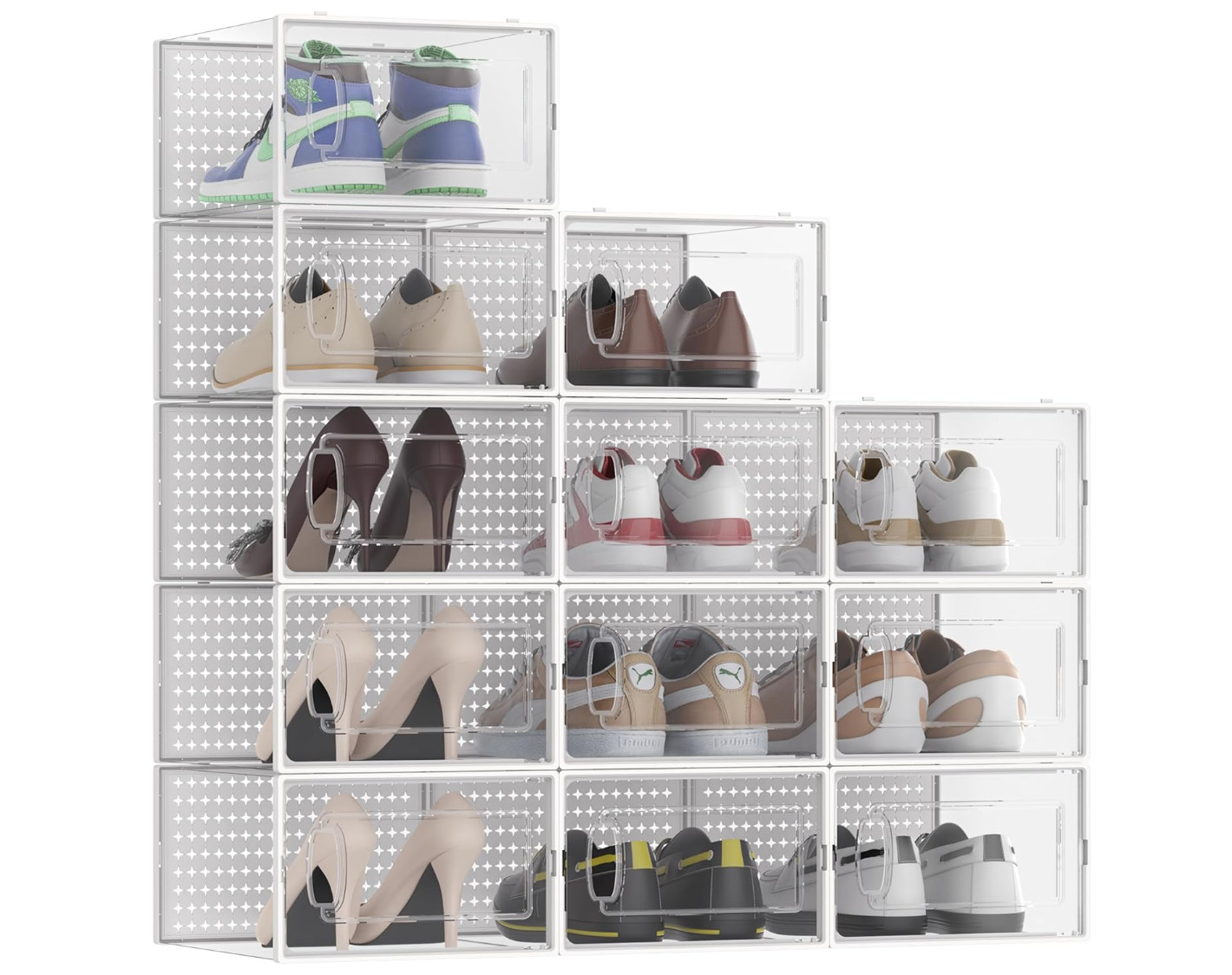 【折后$19.99 Prime包邮】透明塑料可堆叠鞋盒 12个!