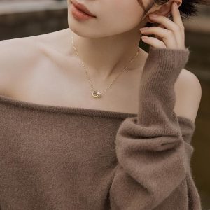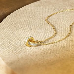 周六福18K镀金纯银双环方晶锆石项链