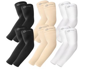 原价$14.99! 包含 6 对冷却袖(2 对黑色 + 2 对白色 + 2 对浅米色), UPF 50+ 男女防紫外线防晒袖套采用优质柔软面料制成,添加抗紫外线成分,可真正阻挡高达 98% 的有害 UVA 和 UVB 射线,可在打高尔夫、射击、跑步、骑自行车、园艺、工作等时阻挡有害阳光,防止皮肤晒伤和老化, 在炎热的夏天穿着男士防晒袖套工作,可立即降低 2-3°C,让您感觉更舒适, 吸湿排汗、透气、速干