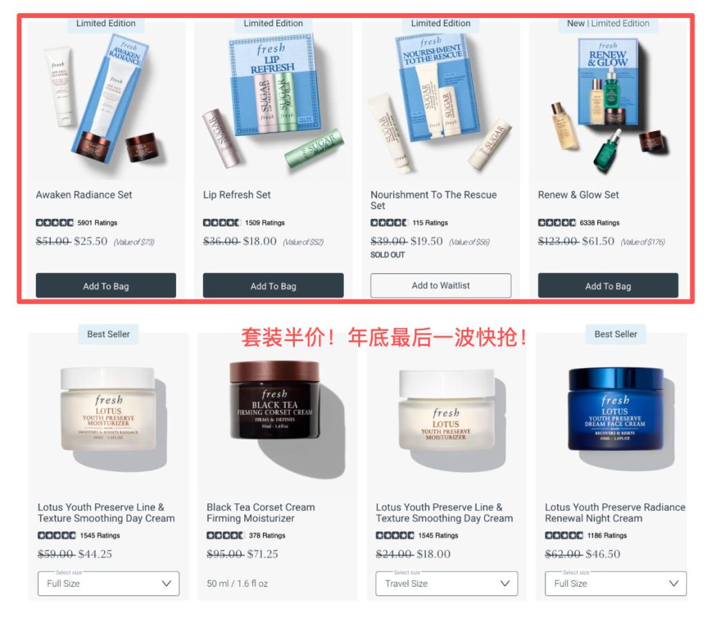 天然系护肤Fresh馥蕾诗好折返场❗️精选一律5折+其余75折+限时无门槛免邮!