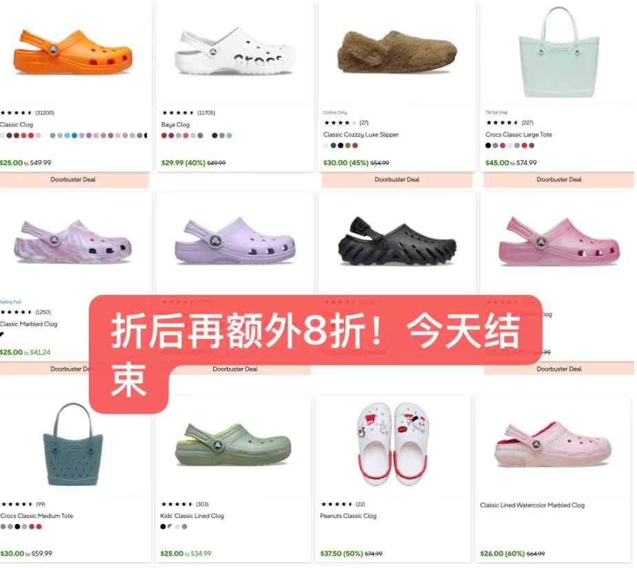 今天就截止❗️Crocs官网精选低至4折+额外8折!绒洞洞鞋低至$20+拿下!