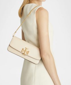 原价$498! Tory Burch “Eleanor” 真皮手拿包,可拆卸链条肩带,11.8 英寸长,可作为手拿包或单肩包使用,翻盖顶部带按扣;T 标志装饰