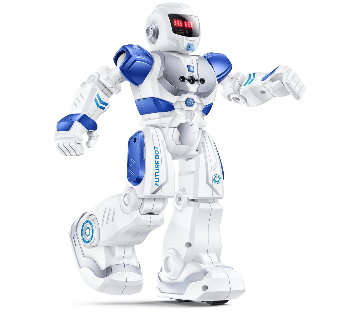 原价$62.99!!机器人支持多达50种运动组合编程,可以帮助您培养孩子的创造力。一键式演示还可以配合音乐表演一组舞蹈,让您的孩子与智能机器人一起享受快乐时光。该机器人可以通过红外控制器控制,并支持手势感应,可以感知你的手的左右、滑动、前后行走的动作。机器人不仅会走路、滑行,还会唱歌、跳舞。动感的音乐和舞蹈会给孩子们带来乐趣。无线遥控器上有音量控制,你可以根据需要调节。