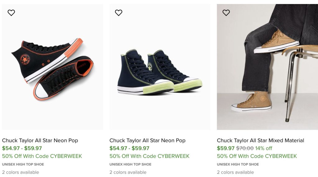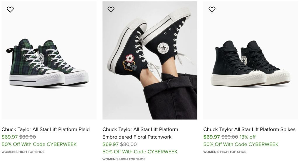 剁手推荐时尚 黑五折上折!Converse 精选时尚鞋履低至半价+额外半价!! By Lena - November 19, 2025 9:11 am PST 折扣码:CYBERWEEK 人人都该拥有的帆布鞋~永不过时,穿上时尚减龄还舒服,巨好搭衣服!折上折很划算~看好快收! 免费登陆注册会员免运费 点击购买 “文案原创,版权©️剁手,转帖请标明出处,抄袭必究” 剁手Facebook:https://duosho.us/lrp8 广告
