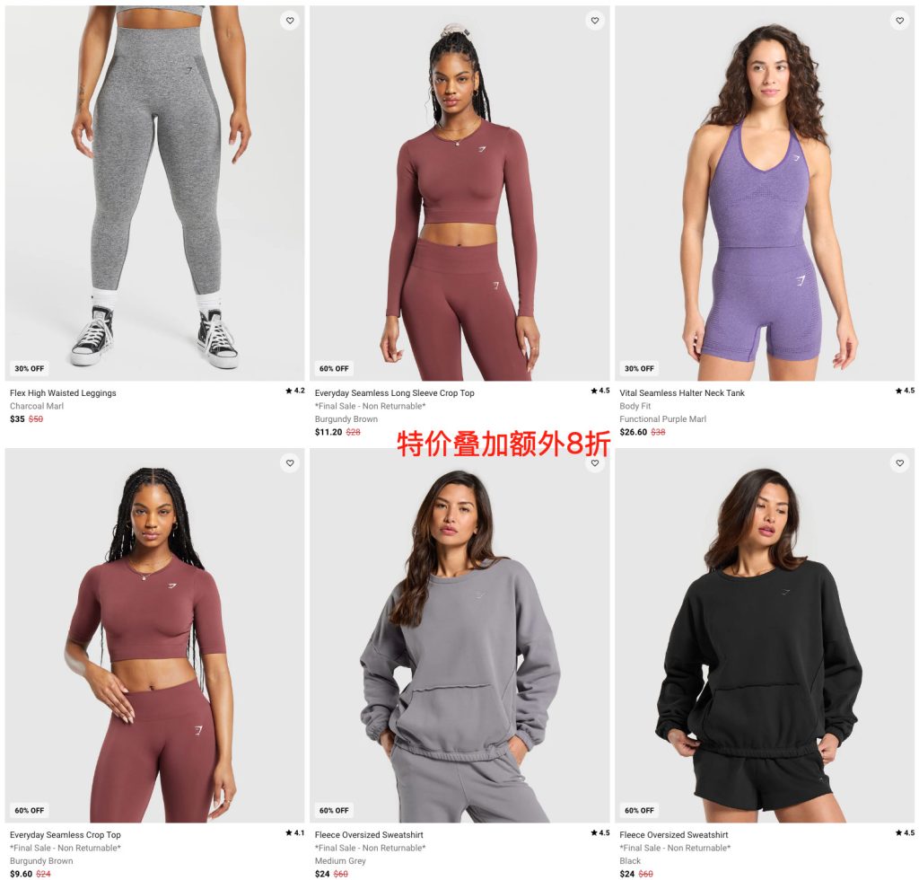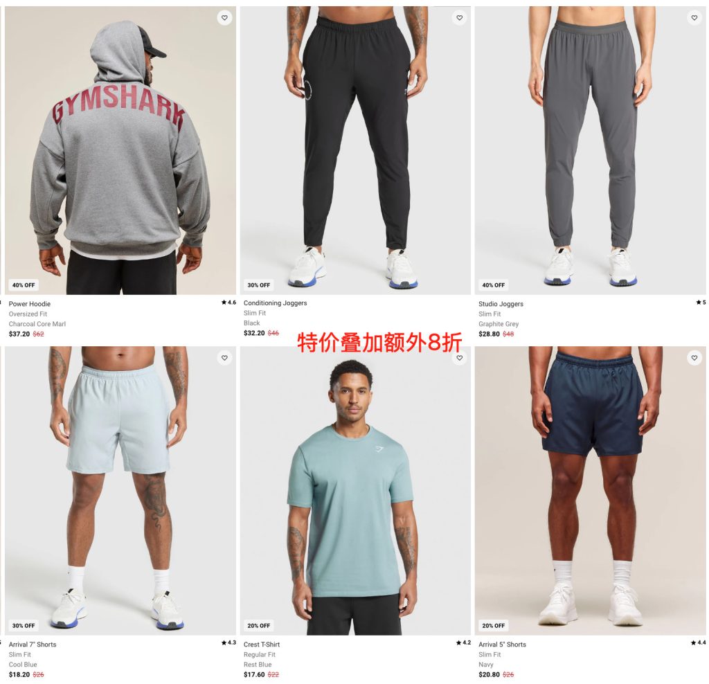 新晋健身网红❗️ GYMSHARK年中折扣全场低至5折➕额外8折!撸铁最爱穿!