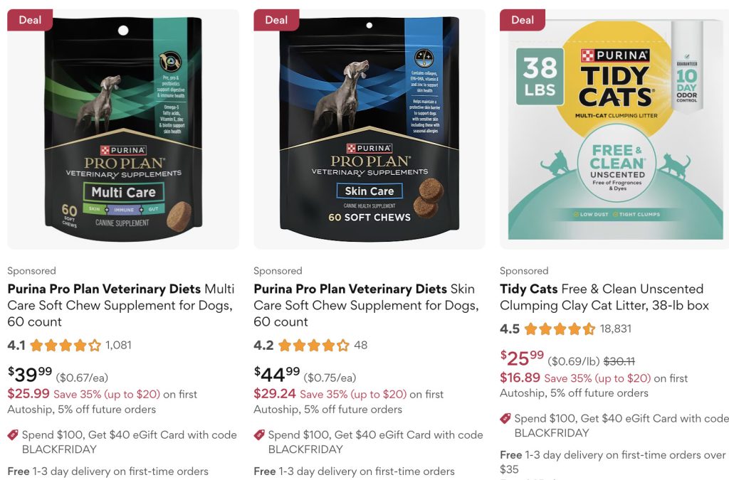 萌宠 黑五送最多❗️萌宠福利!Chewy Purina宠物食品用品满$100送$40礼卡! By Lena - November 28, 2025 8:26 am PST 超级实惠!家里的狗子,喵星人都有福啦!!赶紧来淘一波,送的礼卡之后蹲折扣使用,分分钟省下一个亿,赶快来淘!! 满$49包邮 点击购买 “文案原创,版权©️剁手,转帖请标明出处,抄袭必究” 剁手Facebook:https://duosho.us/lrp8 广告