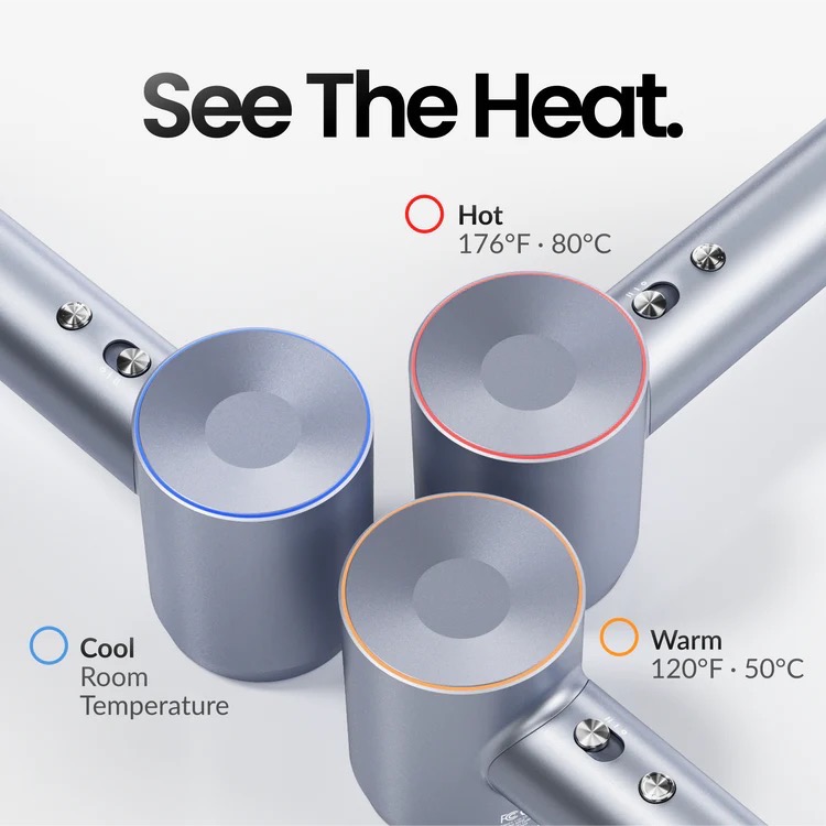 红/黄/蓝温控灯环显示温度,长按2秒切换冷热循环风;低噪运行,安静不扰人