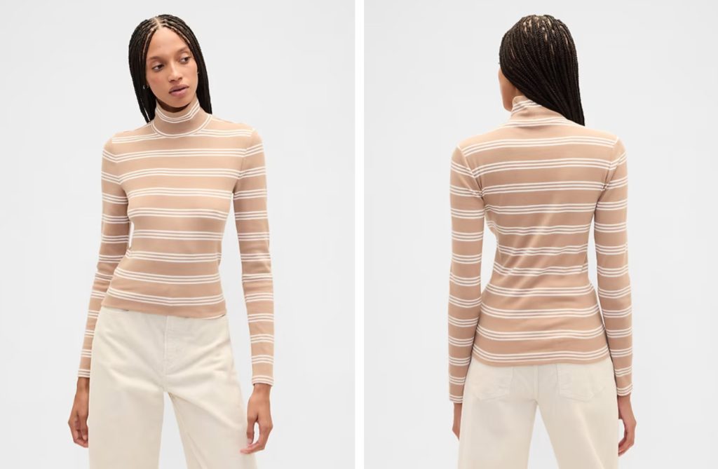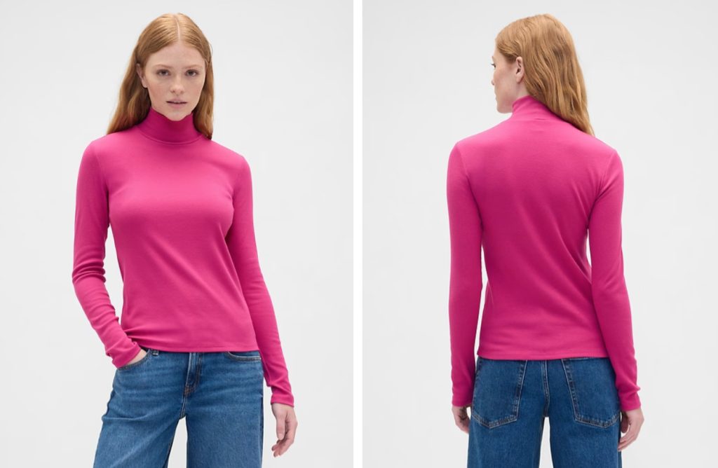 原价$39.99!柔软罗纹针织面料,贴合舒适不紧绷。高领设计提升保暖度,长袖版型简约百搭,适合单穿或叠搭。基础款式轻松融入日常穿搭。产品产自支持性别平等与女性赋权的工厂。