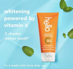 原价$6.99! 4.0 盎司(约 113 毫升)的 Hello 维生素 C 美白牙膏,含氟,天然薄荷, 不含 SLS,可使牙齿亮白多达 2 个色度, 采用维生素 C,可去除 94% 的牙渍,是过氧化物的替代品, 口感绝佳,有助于清新口气