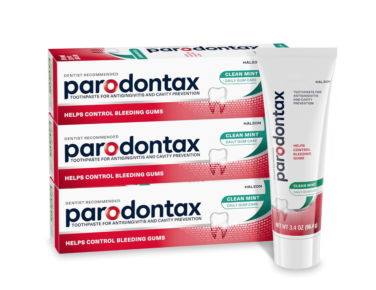 原价$17.49!!三支3.4盎司的pardontax清洁薄荷口香糖牙膏,用于牙龈健康。牙膏可以帮助出血的牙龈,帮助去除和杀死牙菌斑细菌,牙膏更有效地去除牙菌斑,去除的牙菌斑是单氟磷酸钠牙膏的三倍;这是一个有意义的差异,支持你和你的病人今天对牙龈炎采取行动