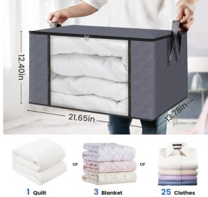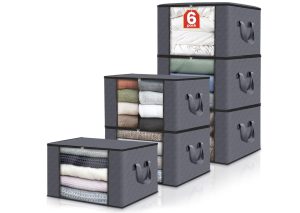 原价$41.99! 6 件装储物容器,用于整理衣物,容量为 60L, 采用优质无味、透气无纺布制成,可保护您的衣物免受灰尘和潮湿的侵害。每个毯子收纳袋尺寸为 21.65”x 13.78”x 12.40”, 手柄采用两层额外厚织物加固,使承重能力翻倍, 当您移动或装载重物时,这些储物袋易于携带和运输, 收纳箱用途广泛,不仅适用于卧室衣柜,还可用于婴儿房收纳、学生宿舍、工具室收纳、毛巾收纳等