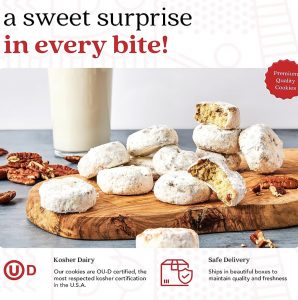 原价$21.45! 采用最优质的全天然成分制成,以松脆的山核桃和纯奶油黄油为基础的独特混合物,撒上糖粉,不含防腐剂,并经过犹太洁食认证的配方!具有极好的质地,在您的口中碎裂并融化,用美味的味道呵护味蕾,在您吃完最后一口后,唇口留香~