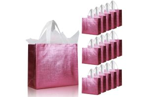 【折后$11.39 Prime包邮】玫瑰粉金属闪亮礼物袋 16个装