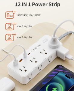 原价$22.99! 12 合 1 电源板旨在满足您的所有充电需求。它拥有 8 个插座(1625W/13A)和 4 个 USB 端口(总共 2.4A/12W),其中包括 2 个 USB-C 端口,您可以同时为多达 12 台设备充电,无论是智能手机、平板电脑、笔记本电脑还是其他电子设备, 0.33 英寸超薄扁平插头设计让您即使在家具后面或狭小空间也能轻松插入此电源板,而 5 英尺编织线则增加了耐用性和灵活性