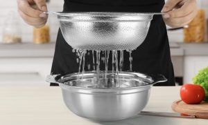 原价$16.99, 过滤器和漏碗采用一体式设计和坚固的手柄,可以舒适地抓握并轻松握住较重的食物。滤锅碗组由安全、健康、耐用的材料制成,滤网的孔密集且均匀,可以快速排水。是厨房中不可或缺的工具,可轻松清洁和准备食物。