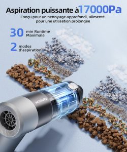 原价$39.99! 电量不足或滤网堵塞可能会影响吸力,每次使用后请清洁可水洗滤网,以确保最大吸力。请勿在潮湿表面或液体上使用,保持设备干燥, 这款强劲的车载吸尘器拥有17,000Pa的吸力,即使是顽固的碎屑也能轻松清除, 配备两档吸力模式,节能模式(10,000Pa)可持续使用30分钟,快速模式可持续使用15分钟, 无论是孩子掉落的食物碎屑还是日常车内污渍,这款迷你吸尘器都是理想的清洁工具