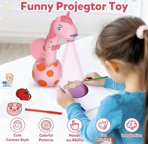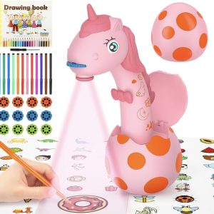 原价$24.97! 儿童智能投影素描器具有独特的投影功能,有别于传统的只能由儿童自己绘画的绘画方式。我们的独角兽绘画投影仪有一个投影头。您的孩子可以从上方投射图像并跟着画画。这种设计将为您的孩子或初学者带来信心、特别的体验和乐趣, 独角兽外观是最受欢迎的儿童设计