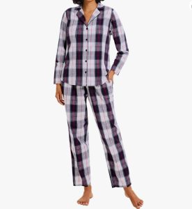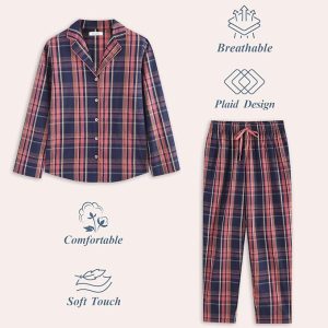 【折后$12.99 Prime包邮】女士100%纯棉轻薄格纹长袖长裤睡衣套装 多色选