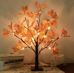 原价$25.99! 可调节树枝,满足您的DIY需求, 可以根据自己的装饰需求,将树枝和细枝弯曲成任何形状。这款桌面装饰高度适中(24英寸/60厘米),非常适合摆放, 24英寸高的枫树灯饰上点缀着24个LED灯泡,枫叶的颜色从鲜艳的橙色到红色,宛如真正的秋叶,色彩缤纷,温暖宜人
