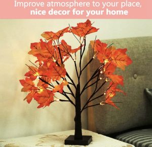 Artificial Fall Lighted Maple Tree 24 LED Thanksgiving Decorations Table Lights Battery Operated for Wedding Party Gifts Indoor Outdoor Autumn Harvest Home Decor