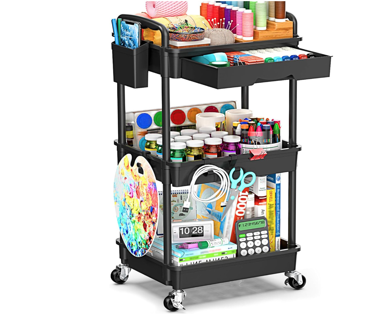 原价$24.99!!这款滚轮推车配有可拆卸的抽屉,便于您整理小物件,让您能够快速、高效地取用物品。适用于化妆品、办公用品或手工工具等。这款实用推车设计有可锁定的轮子,推车能在各种表面上平稳移动,包括地毯,而锁扣在推车静止时能确保稳固性,增加安全性。