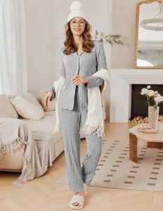 原价$32.99, 超轻、柔软、舒适、透气、有弹性的罗纹面料。与棉质相比,罗纹针织睡衣套装不易起球。纽扣睡衣设计,经典的凹口领增添了这款冬季女式睡衣套装的独特性!