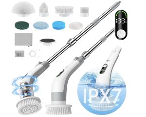 Electric Spin Scrubber with LED Display, IPX7 Waterproof Powerful Shower Scrubber, 2H Runtime