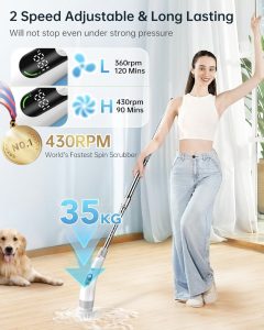 原价$14.99! 双电池驱动7.4V高扭矩电机,即使在35公斤的压力下也不会堵塞,提升了电动旋转洗地机的性能和耐用性。它在每次清洁过程中提供持续的动力,确保持续高效的清洁效果,真正节省您的时间和精力,保护您的腰部, 配备LED显示屏,您可以方便地监控工作速度和电池寿命