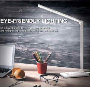 White crown LED Desk Lamp Dimmable Table Lamp Reading Lamp with USB Charging Port
