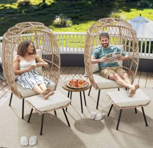 DWVO Outdoor Egg Chair with Ottoman for Outdoor Indoor