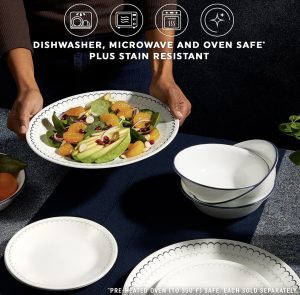 原价$24.99! 这些中型盘子非常适合盛放沙拉、甜点、开胃菜等,可以替代餐盘, 采用三层坚固的玻璃盘和碗,可防止碎裂、破裂和刮擦, 耐用的餐具套装重量轻、易于操作,可紧凑堆叠,最大限度地利用橱柜空间, 清爽的乡村纺织品搭配精致的扇形饰边,为这款餐具套装带来柔和的魅力