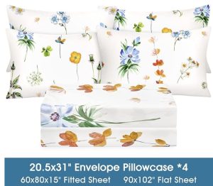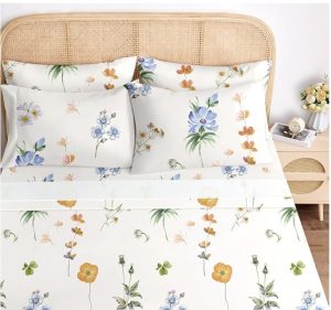 BYSURE Queen Sheet Set 6 Pieces (Yellow & Blue Watercolor Floral)