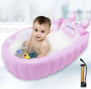 原价$25.99! 幼儿浴缸配有礼盒包装,包括 2 个有趣的婴儿浴池玩具和一个气泵, 这款充气浴缸适合 0 – 6 岁的男婴女婴, 纹理底部可防止婴儿滑倒, 对于 0-6 个月的新生儿,婴儿可以在洗澡时斜躺作为浴床,防滑室可防止婴儿滑落, 对于 6 个月至 1.5 岁的婴儿,婴儿可以坐起来洗澡,并使用中央气室作为婴儿浴椅以保持婴儿的平衡, 对于 1.5-5 岁的孩子,放掉中心气囊以节省更多婴儿淋浴空间,它可以作为 Spa 的水上休闲躺椅, 无毒加厚 PVC,实用耐用,充气浴缸柔软、光滑无毛刺,不易损伤儿童娇嫩的皮肤。