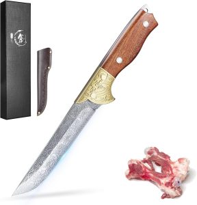 原价$31.98! 采用高碳日本钢锻造,锋利耐用,硬度达58HRC,轻松处理鱼肉骨剔。雕花刀身搭配黄铜细节与D10红木手柄,兼具实用与美感。附优雅刀鞘与精美礼盒,烹饪、露营或送礼皆宜。