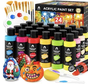 40 Pcs Acrylic Paint Set – 24 Colors (2oz/60ml) with 12 Brushes