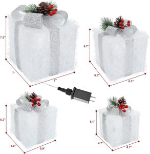 原价$27.99!采用坚固的金属框架,每个面覆盖闪亮的金属箔和银色缎带,顶部装饰有精美的蝴蝶结、松果和松针,适合室内或室外的圣诞装饰,增添节日氛围。内含60颗LED灯,插电即用。