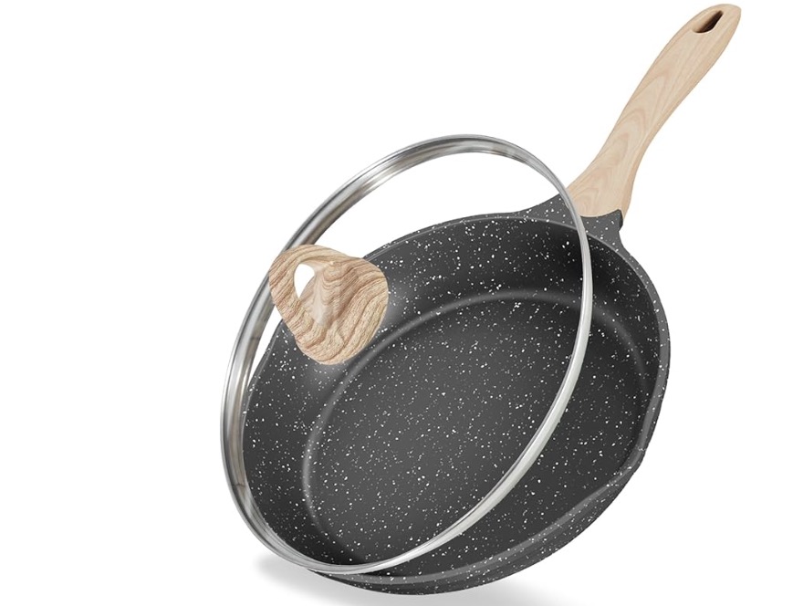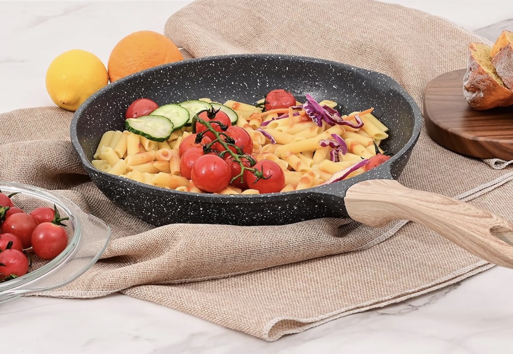 原$27.99!煎锅采用花岗岩涂层,不含PFOA,安全健康。烹饪时只需少量油或黄油,清洁时轻松去除残留,带来更健康和愉悦的居家烹饪体验。