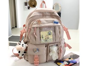 Kawaii Backpack with Cute Bear Plush Kawaii Pin Accessories Large Capacity Aesthetic School Bags Cute Bookbag for Girls Teen Pink