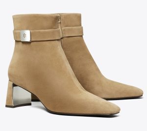 原价$500!Georgia 短靴以其鞋面装饰袢带及金属品牌铭牌为特色。这款鞋履轮廓流畅,采用尖头设计,并选用柔软麂皮精心打造