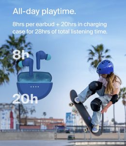 原价$34.99! 每个耳机 8 小时的续航时间,加上充电盒 20 小时的续航时间,总共 28 小时的电池续航时间,让这些耳机可以陪伴您的孩子一整天,从上学到玩耍等等!只需 10 分钟的 USB-C 快速充电,即可享受 90 分钟的播放时间, SoundForm Nano 2 配备蓝牙 5.3 技术,可让孩子无线连接到 30 英尺范围内的所有蓝牙设备。轻松与您的笔记本电脑、iPad 或移动设备配对, 旨在提供完整、均衡的高保真音频,而环境噪音消除 (ENC) 可消除背景噪音