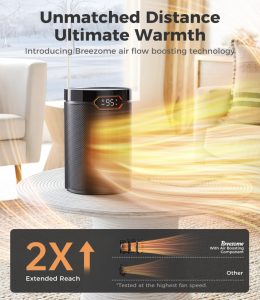 原价$39.99! 这款取暖器最高功率高达 1500W,可在数秒内迅速为您的空间升温。其先进的风道设计确保在更大范围内高效均匀地加热,非常适合快速提升空间温度, 采用降噪电机技术,在最低设置 (H1) 下运行时噪音仅为 34 分贝,为睡眠或工作提供宁静的环境。显示屏可关闭,指示灯亮度自动调节至 50%,避免干扰