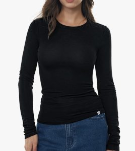 Women’s Merino Wool Blend Shirts Long Sleeve Tops Crew Neck Fitted Basic Tee Cozy Embrace Collection