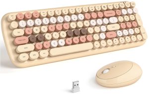 原价$39.99! 最流行的浅奶茶色,吸引更多人的目光,给你不一样的视觉,享受不一样的键盘体验,打造多彩的办公桌,给你愉悦的心情!所有按钮都可以拆卸,放入水中清洗,还配有刷子清洁键盘上的垃圾。悬浮按钮设计给您柔和安静的感觉,带您回到最原始的打字机风格!35英尺工作范围,二合一纳米接收器,无需安装其他软件,无延迟或掉线,让您的桌面更加整洁,键盘或鼠标可以单独使用,只需插入一个USB接收器即可使用您的无线键盘鼠标组合!