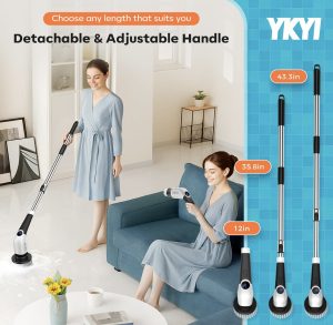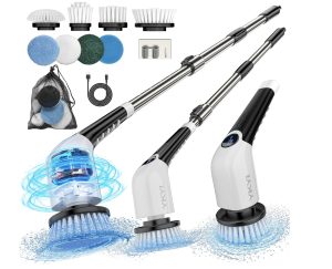 原价$64.99! 长柄采用三段式设计,伸缩管长度可在35.8英寸至43.3英寸之间调节,三档速度可调(440/380/280RPM)。无线设计,配备2500mAh电池,快速充电4小时(Type-C接口),可连续工作长达90分钟。语音播报和LED数字显示电池使用情况, 电池容量、IPX7防水等级、转速、配件均已升级, 这款高效电动洗地机只需传统清洁工具一半的时间即可完成清洁工作, 配备挂钩和旋转刷头收纳袋,节省收纳空间, 8 个可更换的多功能刷头, 可用于清洁家中各种表面
