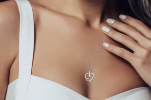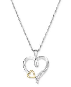 【折后$19.99】Macy’s 纯银镶10K金双心钻饰项链