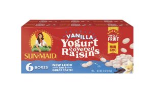 原价$2.97! 用香草酸奶奶油包裹的晒干加州葡萄干, 适合儿童和成人食用, 非常适合午餐盒零食、课堂零食、办公室零食或课后零食