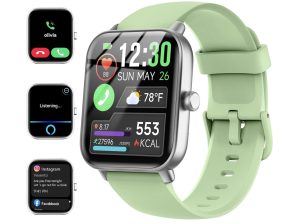 原价$63.66! 升级版智能手表配备内置高清扬声器,通过蓝牙 5.3,您可以在手机不在身边时直接从智能手表接听/拨打电话,还可以查看通话记录、常用联系人和拨号电话, 健身追踪器智能手表与 Alexa 配合使用,您可以查询新闻、天气、设置闹钟,帮助我们更便捷、更智能、更健康地生活, 超过 120 种运动模式, 记录您全天的步数、卡路里和行进距离,让您更好地了解您的运动情况并相应地计划您的运动计划