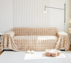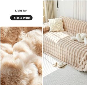 AMWAN Decorative Fuzzy Faux Rabbit Fur Couch Cover Soft Thick Throw Blanket for Couch Sofa